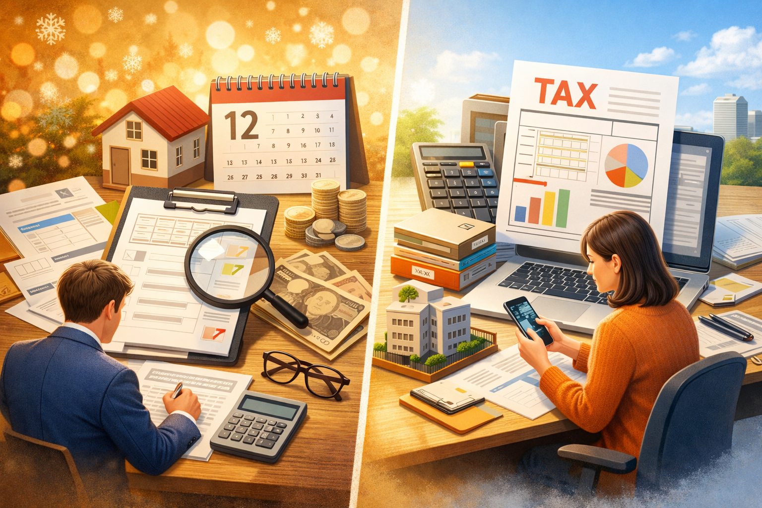 年末調整と確定申告は、どちらも「一年間の所得税を正しく計算するための仕組み」です。ただし、大きな違いは「誰が手続きをするか」にあります。